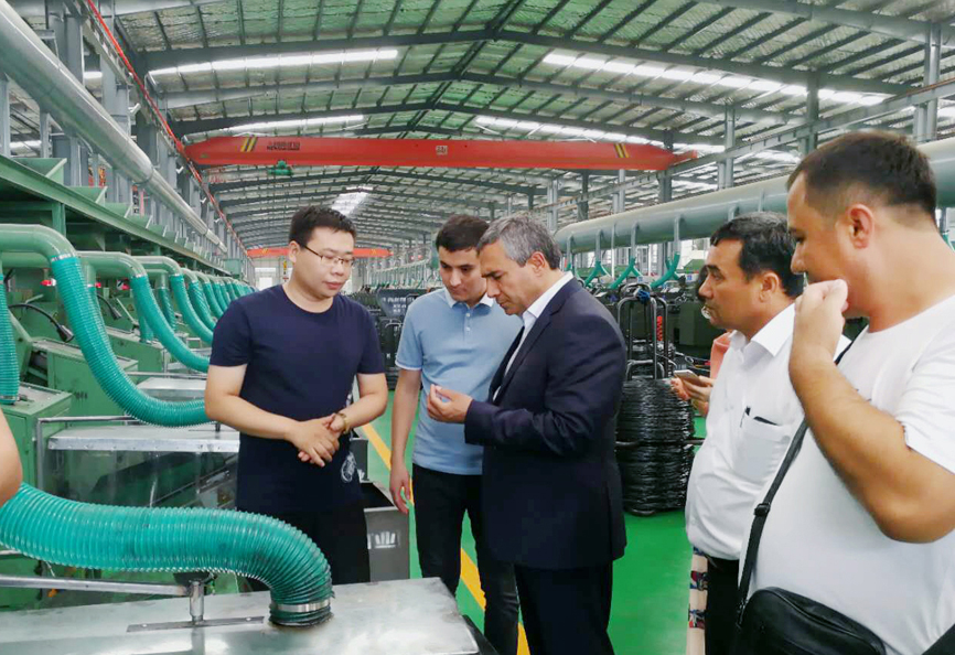 7月14日下午,烏茲別克斯坦KOKAND CITY州長(zhǎng) Usmonov Maruf蒞臨青龍劍釘業(yè)經(jīng)濟(jì)開(kāi)發(fā)區(qū)公司。青龍劍釘業(yè)總經(jīng)理馬群澤熱情接待了到訪的Usmonov Maruf先生及隨行人員,并陪同Usmonov Maruf先生到車(chē)間進(jìn)行參觀考察。